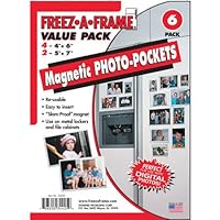 The Freez-A-Frame magnetic photo holder from Howard Packaging will never leave you out in the cold.It will hold itself rock-steady to your refrigerator, school locker, filing cabinet or any other flat metal surface.The open-pocket design of these little frames make photos, whether from digital or film, both easy to insert and easy to remove when its time to change the photo.You'll find Freez-a-Frames perfect for setting up your refrigerator gallery of family, friends and the doggone dogs and cats. This value pack includes (4) 4x6 Freez-a-Frames and (2) 5x7 Freez-a-Frames.In fact, a pair of Value Packs gets you an even dozen frames, an excellent start for any kitchen collection of cuties too precious to hide in an album.