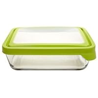 This multi-purpose rectangular storage container lets you prepare, serve, store, and transport foods in one dish. The clear glass container is oven- and microwave-safe, will not stain or warp, and does not absorb food odours. An air-tight, leak-proof lid makes the container ideal for storing leftovers in the refrigerator or freezer, as well as bringing them to work or school; a lip on one end of the lid allows for easy removal. The clear glass lets you easily see the contents, whether in the refrigerator or pantry. The top of the lid is flat with a groove that allows for easy stacking of same-size containers.Loosen lid before placing in microwave.Size: 6 cupColor/Pattern: Lime green lidCapacity: 6 cups/1.5 litresDimensions: 8½"L × 6½"W × 2¼"HSuitability: Refrigerator, Freezer, Oven, MicrowaveMaterials: Glass container with low density polyethylene/poly-olefin ester lidCare: Container is dishwasher safe; lid is top rack dishwasher safeProduct of United StatesAllergens: Lid is BPA-free