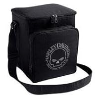 Click Here to see more reviews about: Harley Davidson Skull Cooler--NEW for 2009. Ripstop polyester insulated cooler with zipper top lid, zipper front pocket, and adjustable shoulder strap. Cooler holds up to twelve beverage cans. Embroidered Harley-Davidson® skull graphic on front. Measures 8 3/4" x 7" x 10 3/4". 99355-09V